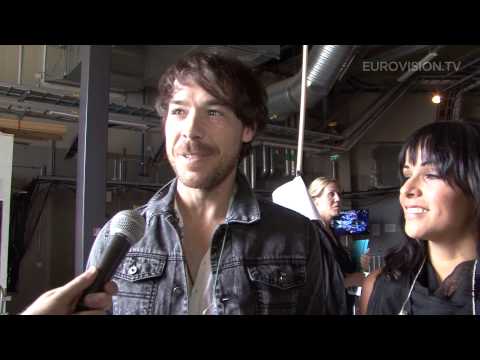 El ganador del Festival de San Remo, con su italiano perfecto, fue el primero en pisar la Green Room, todavía creo que sin acabar. Lo veo un poco perdido en el escenario, pasa la cámara y el mira para otro lado, un poco extraño. Creía que iba a haber un piano por ahí, pero parece que no, todo es cuestión de esperar al segundo ensayo, y a la final. Este tampoco creo que gane, pero el Top 10... Seguramente, como siempre desde que volvió en 2011. Es de los únicos allí que no sabe mucho inglés, aunque en la entrevista ha hablando algo.